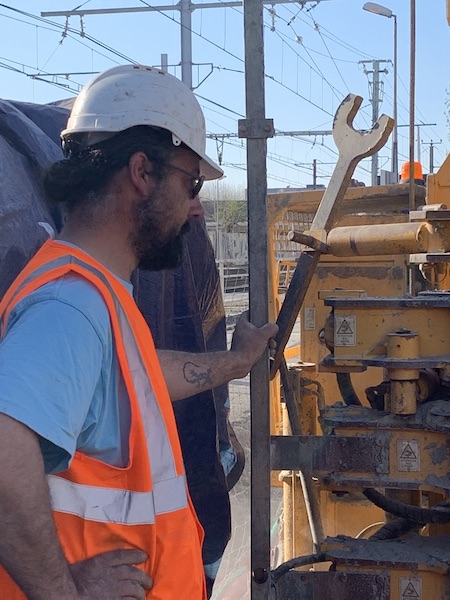 C’était la première fois que nous forions aussi près d’une voie ferrée en activité (environ 5m) avec un flux ininterrompu de trains et de passagers.